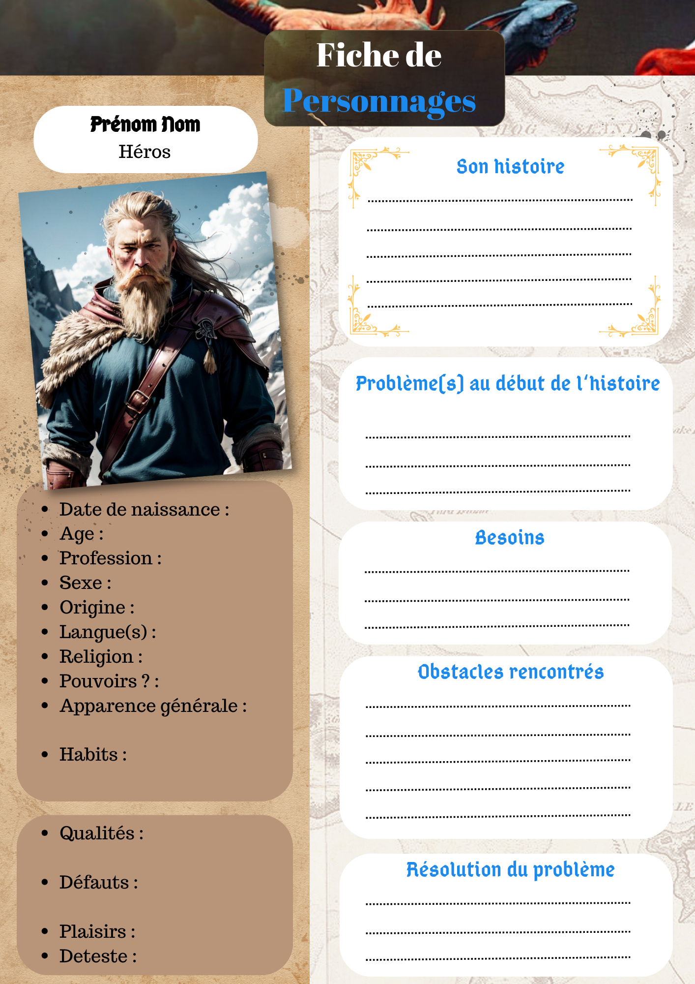Je vous offre le template de ma fiche de perso sur Canva. A l’intérieur plusieurs fiches à découvrir.